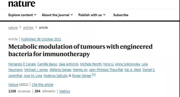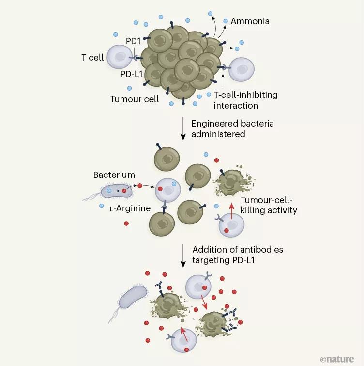 近日,来自美国加州大学科研团队的一项最新研究为这个难题找到了突破口,他们发现了一种可靶向性定植于癌细胞中的工程益生菌,能“变废为宝”,将肿瘤微环境中的代谢废物转化为L-精氨酸,从而促进T细胞抗肿瘤免疫应答,为提高临床T细胞治疗效果提供了新的策略和依据。相关研究以Metabolic modulation of tumours with engineered bacteria forimmunotherapy为题发表于顶级期刊《Nature》上。