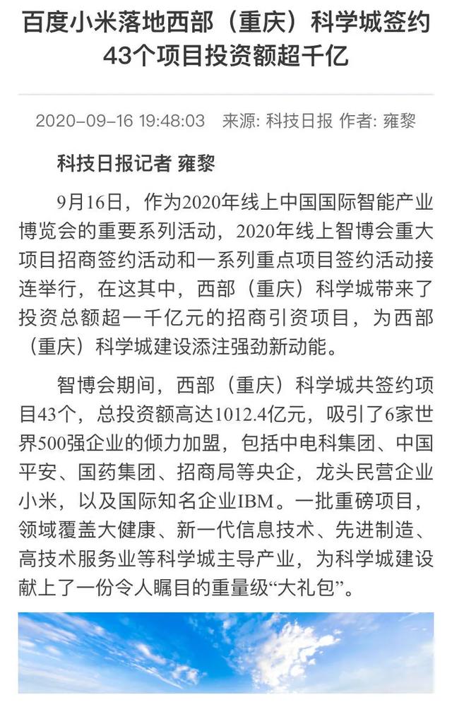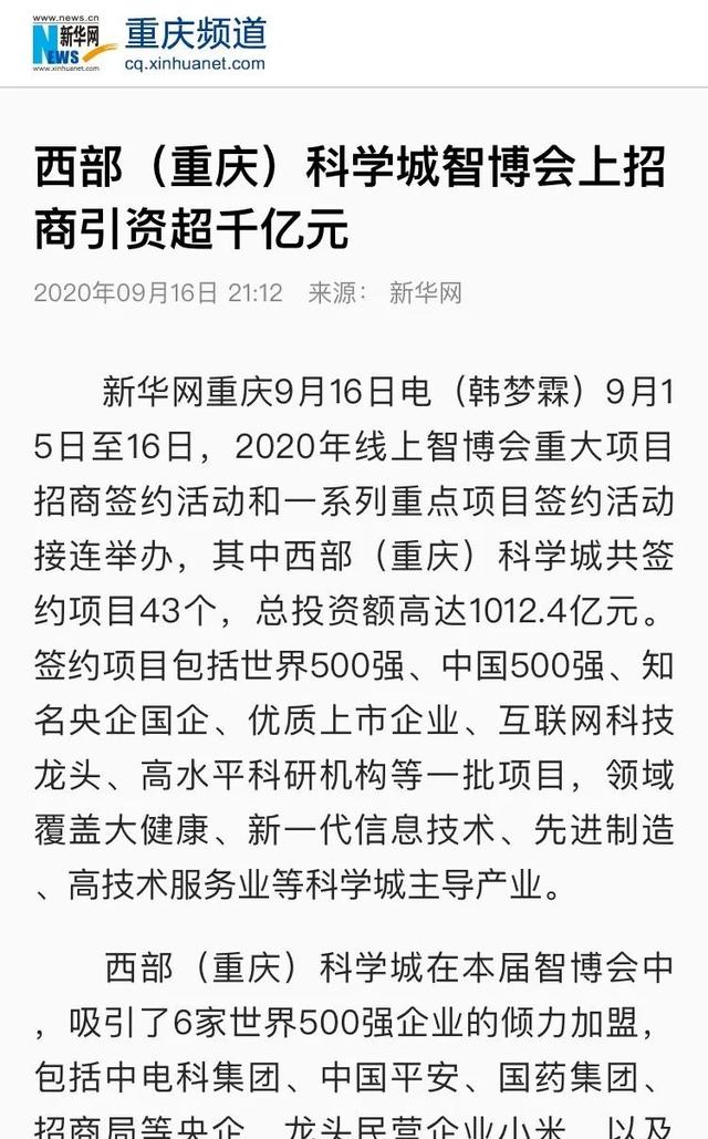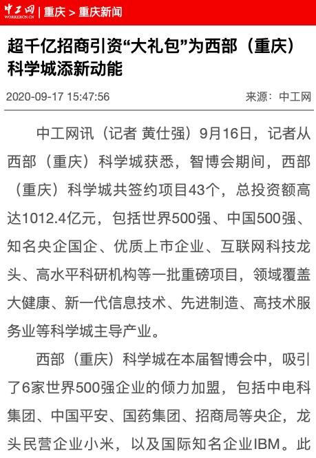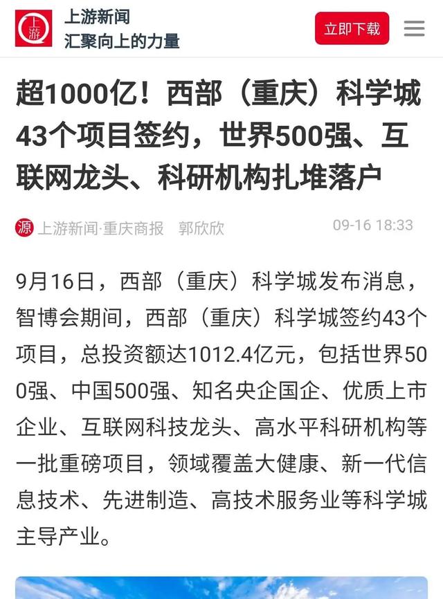 总签约投资额超千亿!西部(重庆)科学城收获招商引资“大单”