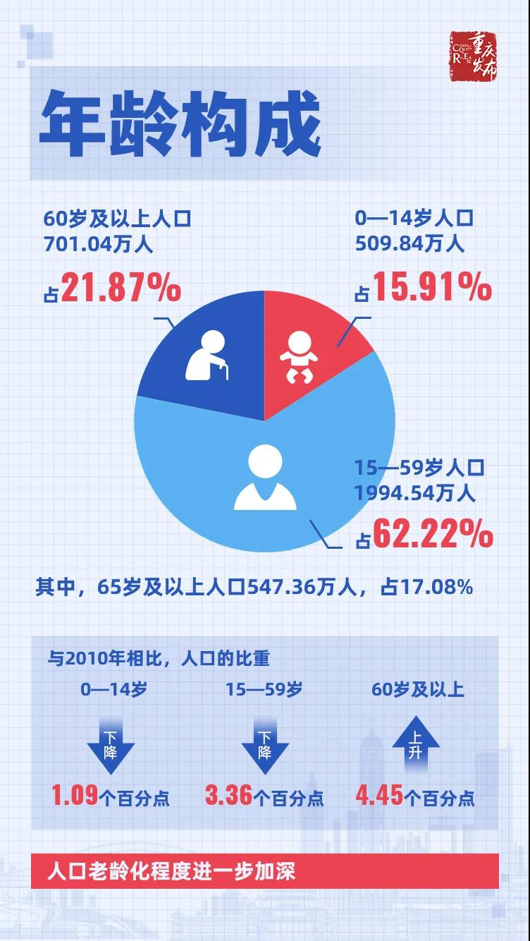 杨弘毅表示,从普查数据显示,重庆60岁及以上人口的比重达到21.87%,其中65岁及以上人口的比重,达到17.08%。