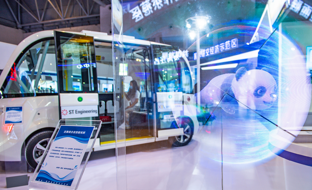 成渝地区双城经济圈馆展示的全息智能炫屏 邹乐 摄