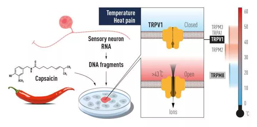 于是加州大学旧金山分校的David Julius决定去探究一下辣椒到底是怎么让人感受到疼痛的。当然,他肯定不能用辣椒直接研究了,而是用辣椒里的关键成分:辣椒素进行研究。