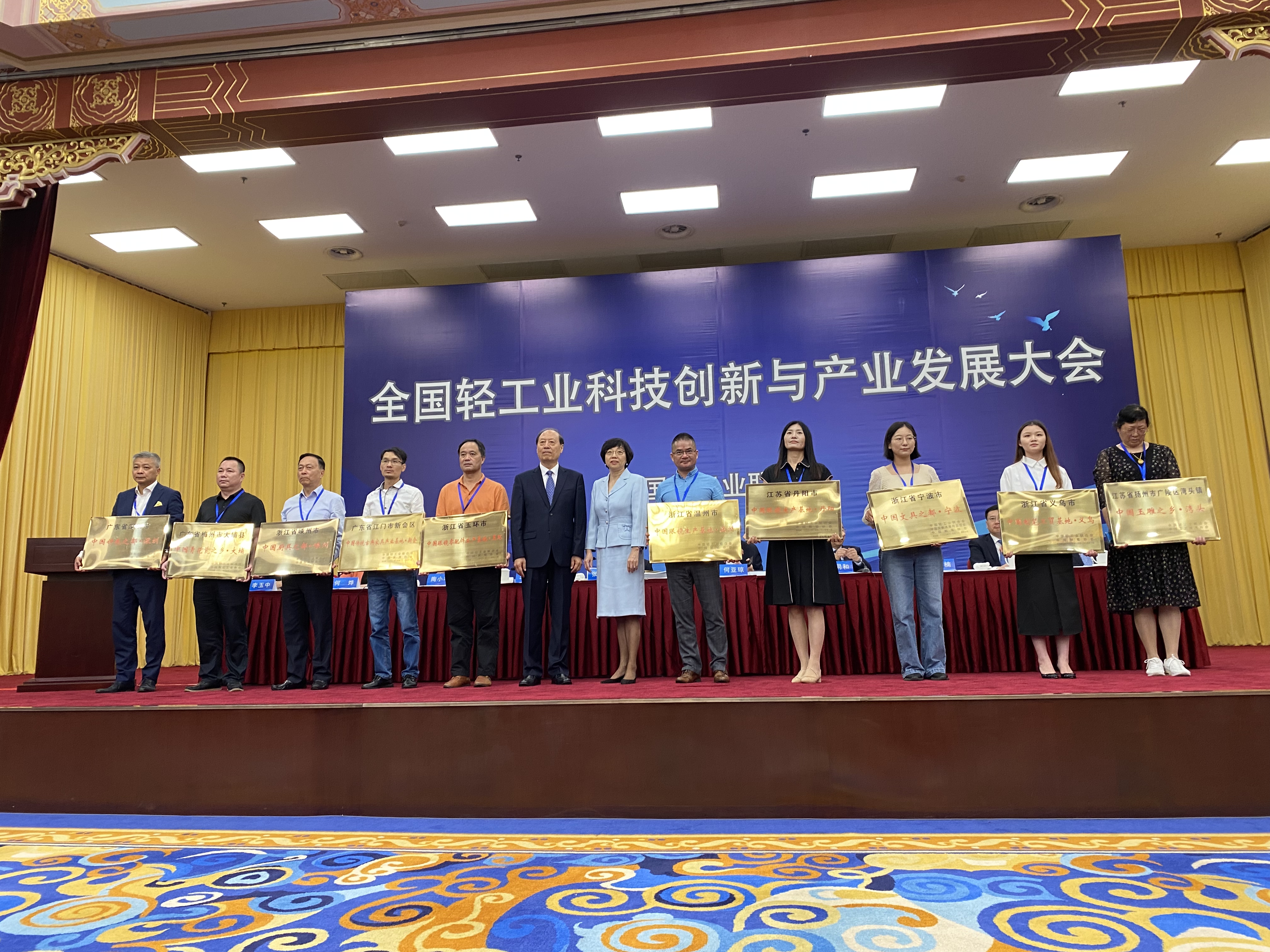会上,国家发改委产业发展司一级巡视员夏农、科技部高新技术司一级调研员曹学军等有关部委领导致辞,中国轻工业联合会张崇和会长做大会主旨讲话。会议由中国轻工业联合会副会长何烨主持。来自全国各地的政府部门负责人、轻工业产业集群代表、行业协会代表、中国轻工业重点实验室或工程技术研究中心负责人、企业代表等近600人参会。宁波文具行业协会代表应邀参加会议并领取奖牌。