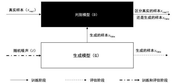 典型的“生成对抗网络”包含两个部分,一个是生成模型(Generative Model,简称G),生成模型试图用几组数字生成一张合成人脸;另一个是判别模型(Discriminative Model,简称D),它对生成模型合成的人脸进行判别,分辨是真实人脸还是合成人脸。