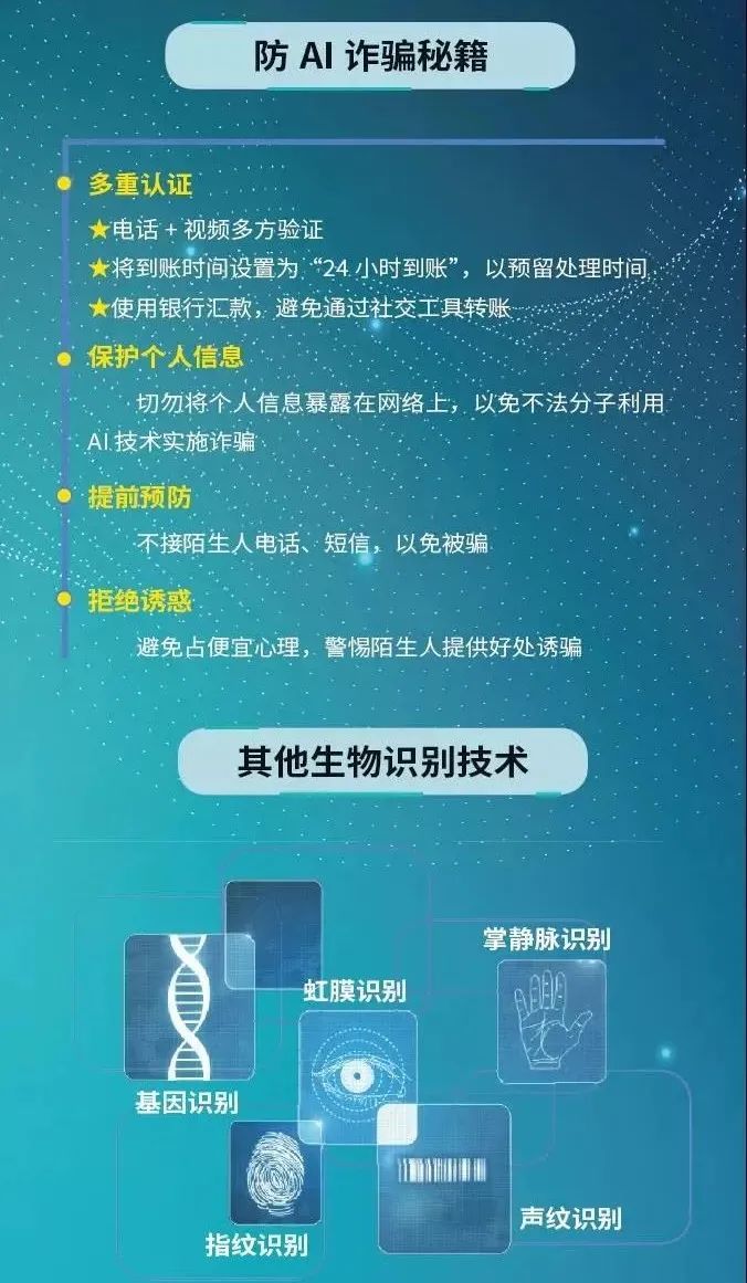 防止侵犯他人肖像权的同时,也要注意保护好自己的肖像权。在使用换脸APP之前,注意阅读用户协议,如果协议中有不合理的地方,能不玩就不玩。切勿将个人信息暴露在网络上,以免不法分子利用AI技术实施诈骗。同时,要提高防诈骗意识,警惕陌生人提供好处诱骗,涉及汇款事项时,多重认证。