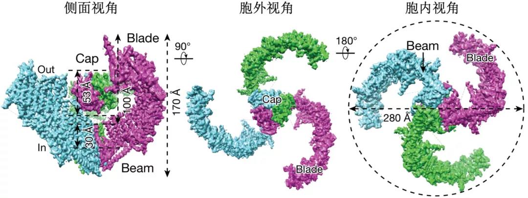 图6. Piezo2冷冻电镜三维结构卡通图(图片改编自Wang, et al., 2019, Nature[23])