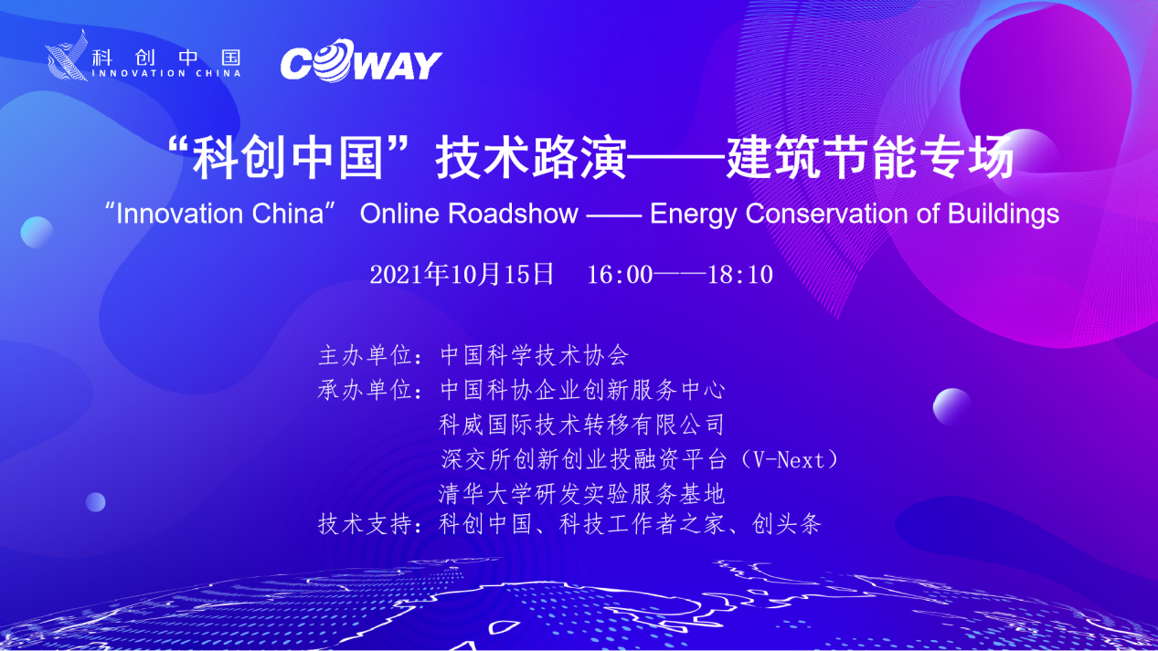 10月15日下午,由中国科学技术协会主办,中国科协企业创新服务中心、科威国际技术转移有限公司、深交所创新创业投融资平台(V-Next)和清华大学研发实验服务基地共同承办的“科创中国”技术路演——建筑节能海外专场线上举行。活动通过“科创中国”、科技工作者之家、创头条等平台宣传推介。科威国际技术转移有限公司助理总经理李桃红主持本期路演。