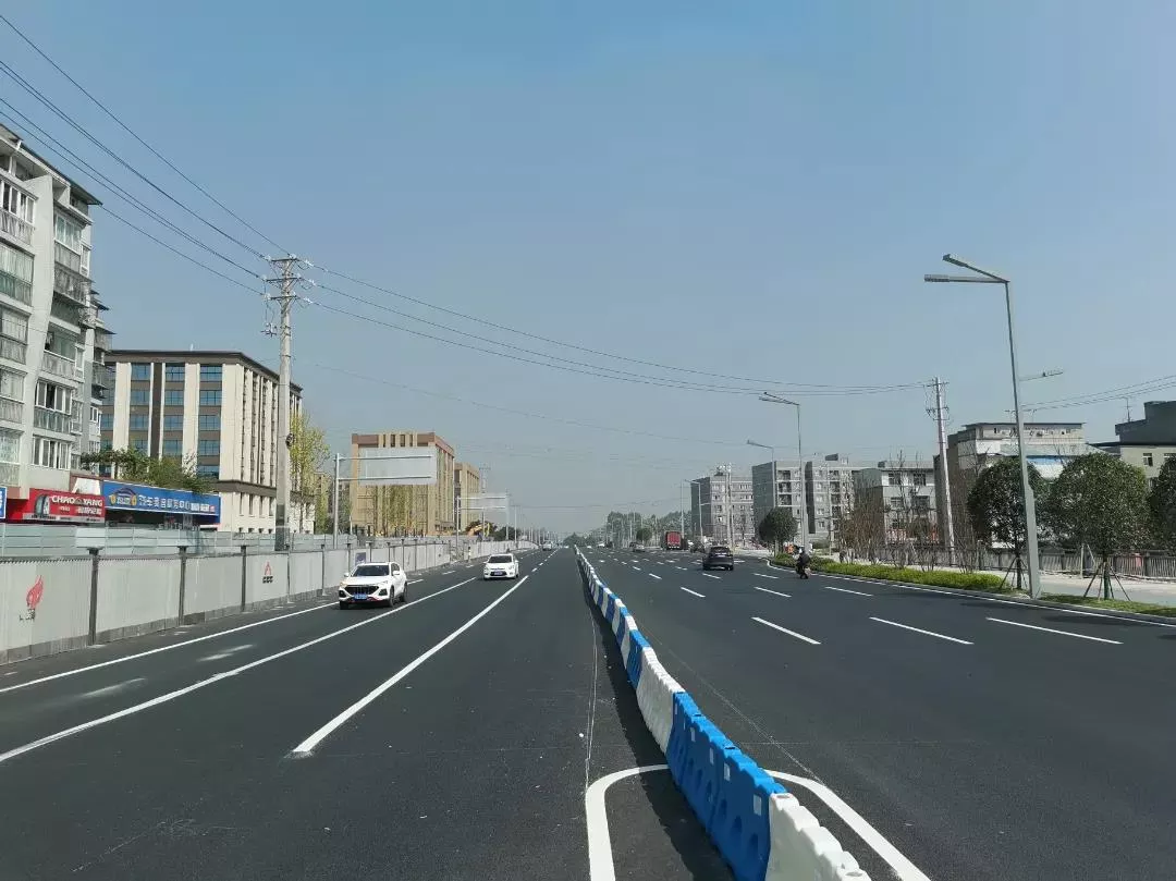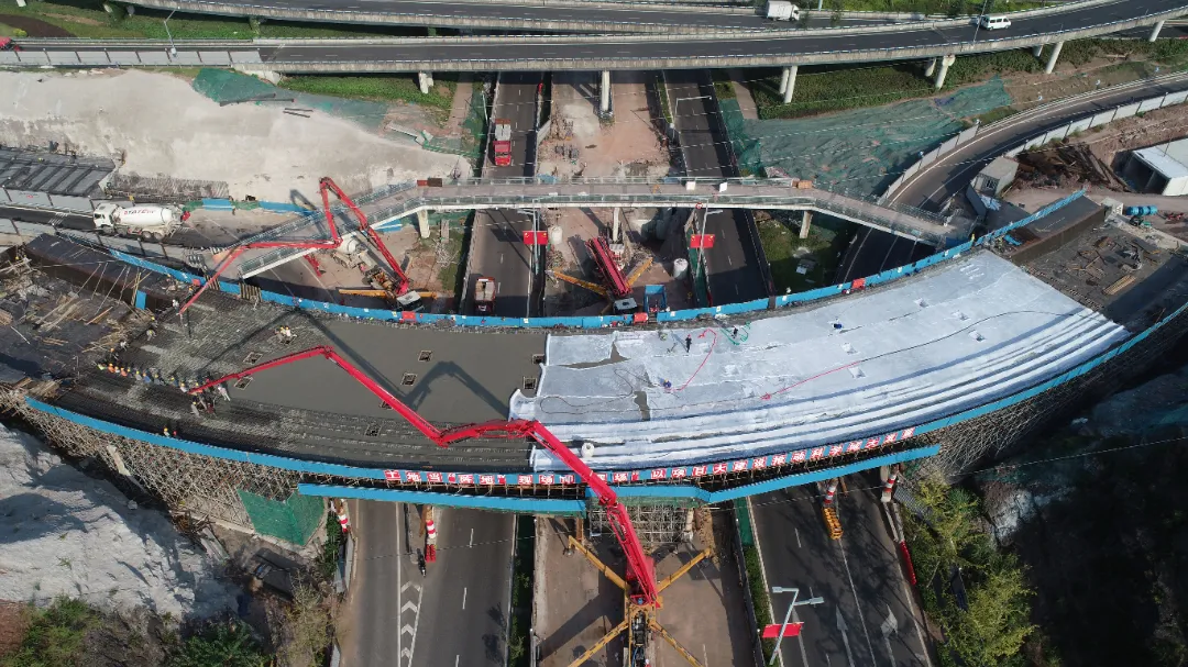 ▲青龙咀立交西辅道桥梁续梁1549立方混凝土完成浇筑。中铁四局供图