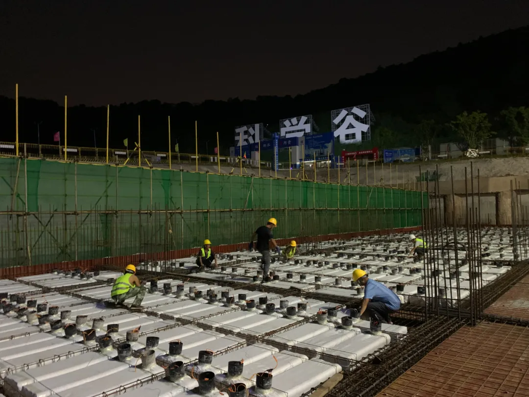 ▲工人夜间施工安装芯模。重庆高新开发建设投资集团有限公司 供图
