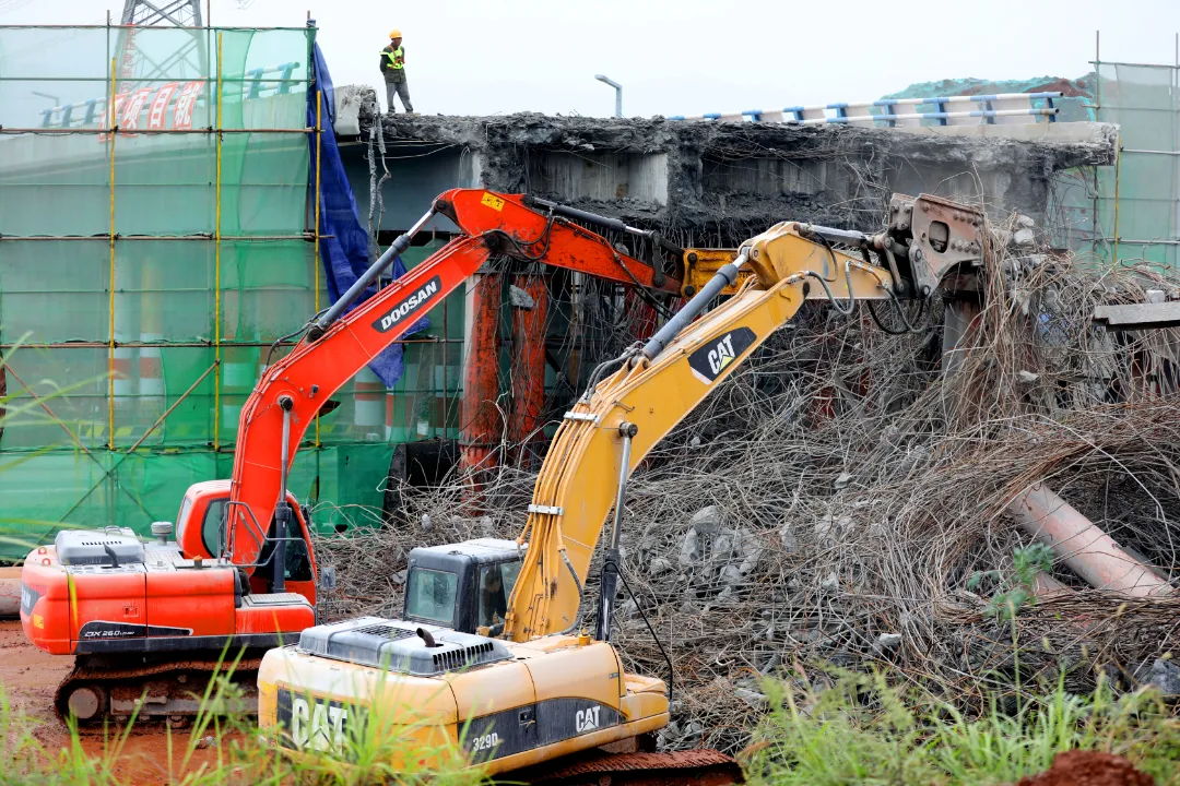 ▲跨线桥拆除现场。雷键 摄