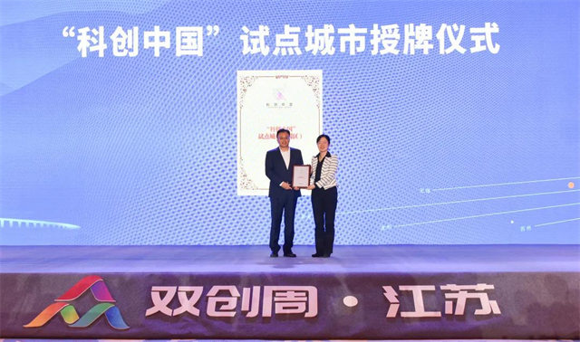 启动仪式上,胡广杰为常州市“科创中国”试点城市授牌,盛蕾接受授牌。