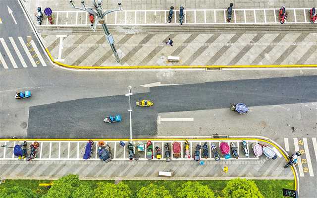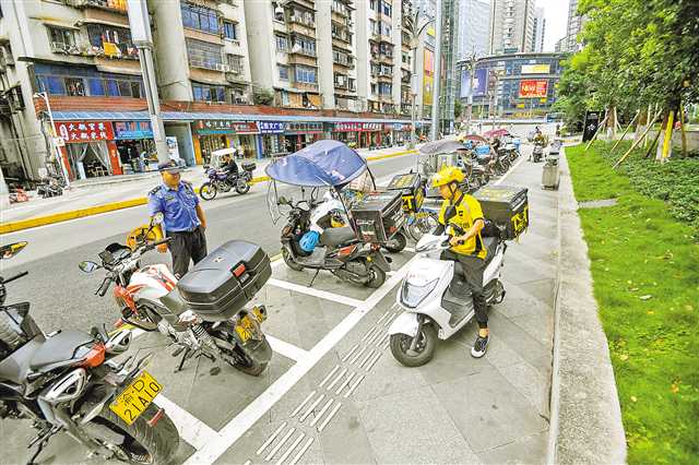 7月5日,九龙坡区石桥铺街道星云路,外卖摩托车在新规划的停车位有序摆放。近来,九龙坡区扎实推进“我为群众办实事”实践活动,通过“马路办公”,梳理城市空间,在人流比较集中的区域深挖停车资源,为摩托车寻找“安身之处”,将新增4000个摩托车停车位,满足外卖行业以及其他市民的停车需求,提升城市品质。记者 郑宇 摄/视觉重庆