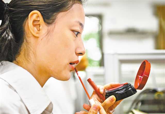 6月24日,红岩村景区讲解员办公室,讲解员正在化妆,准备开始一天的讲解工作。