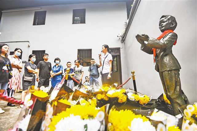 6月27日,白公馆,讲解员李恒莉正在为市民讲解革命烈士小萝卜头的故事。