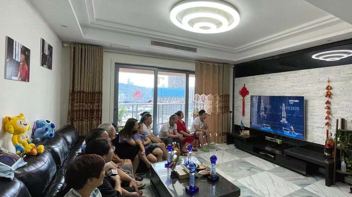 施廷懋的家人在重庆收看比赛直播。