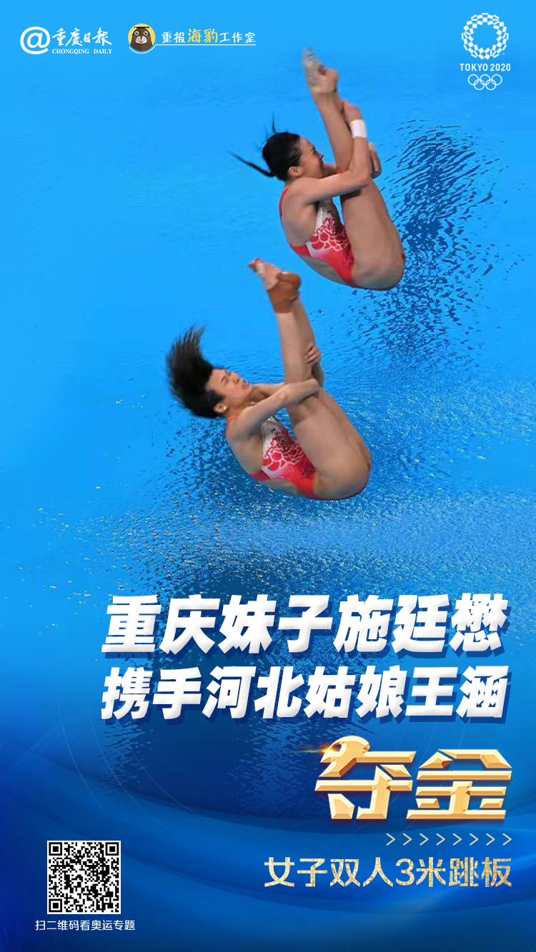 重庆妹子施廷懋携王涵为中国揽下东京奥运第四金,跳水女子双人三米板冠军入手