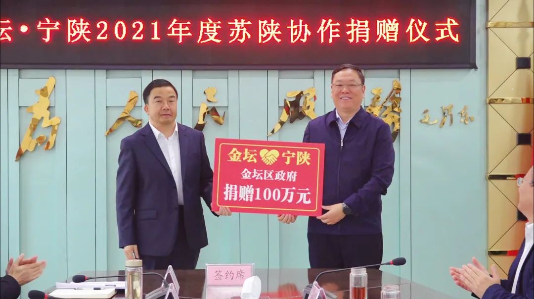 在随后召开的金坛·宁陕苏陕协作联席会上,两地签订了“十四五”协作协议,金城镇与宁陕县江口镇签订了镇镇结对协议;我区向宁陕县捐赠壹佰万元,金城镇、儒林镇、西城街道办事处分别向宁陕县城关镇、四亩地镇、江口镇捐赠拾万元。