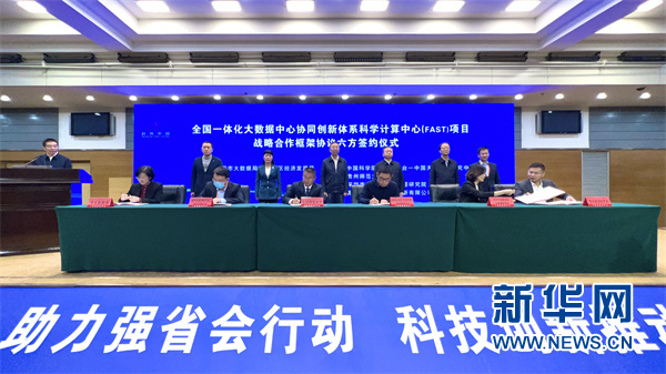 活动现场,中国科协“科创中国”贵阳挂点指导组向贵阳市授“科创中国”试点城市牌匾;贵阳市向“科创中国”贵阳院士工作站、全国学会服务站授牌;贵阳市大数据局、贵安新区经济发展局与中国科学院国家天文台—中国天眼联合研究中心、贵州师范大学等六家单位签订了《全国一体化大数据中心协同创新体系科学计算中心(FAST)项目战略合作框架协议》。