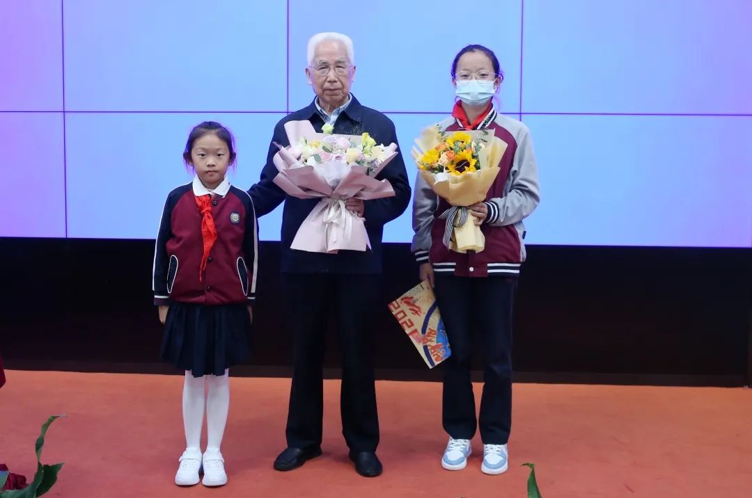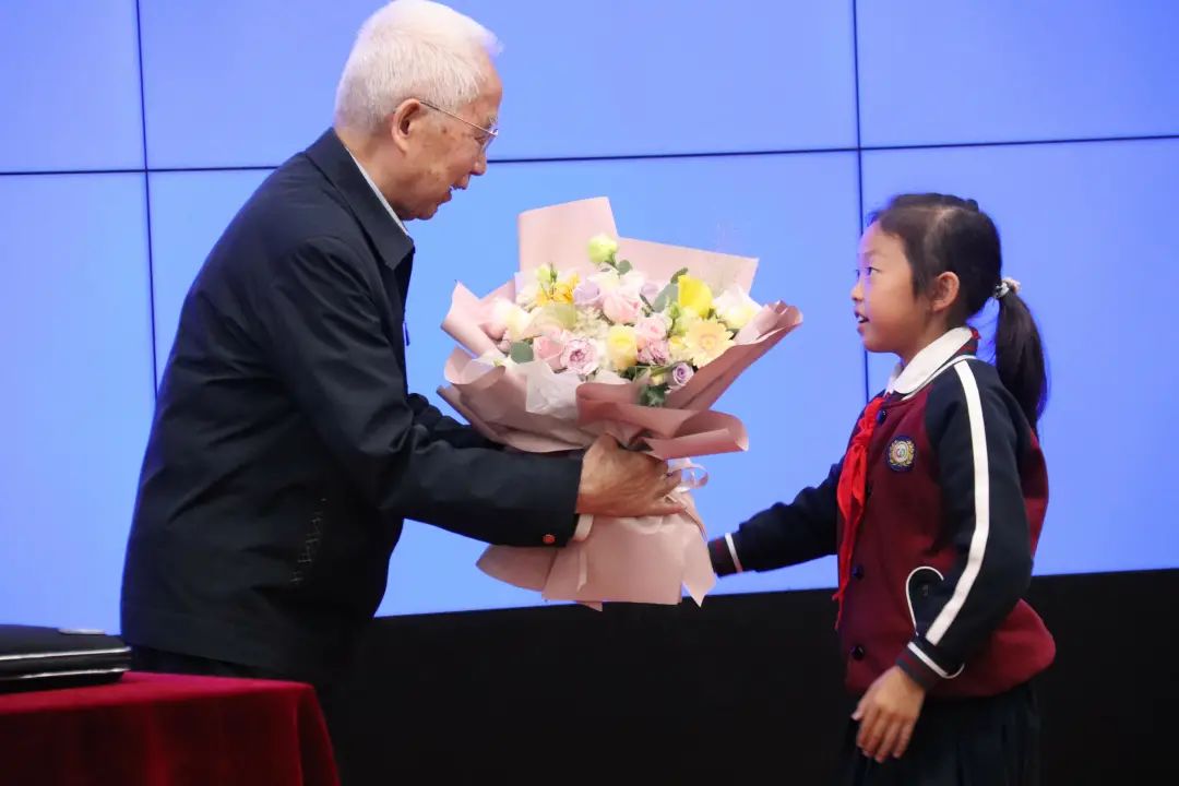 ▲学生代表给院士献花