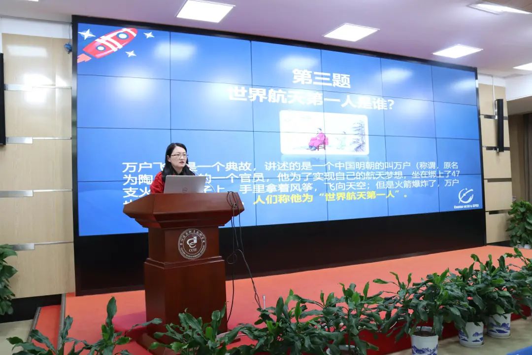 与此同时,同学们在科普讲座现场进行了一场北斗航天科技知识问答主题活动,学生们积极主动回答问题,表达了对中国北斗及航空航天的关注和热爱。