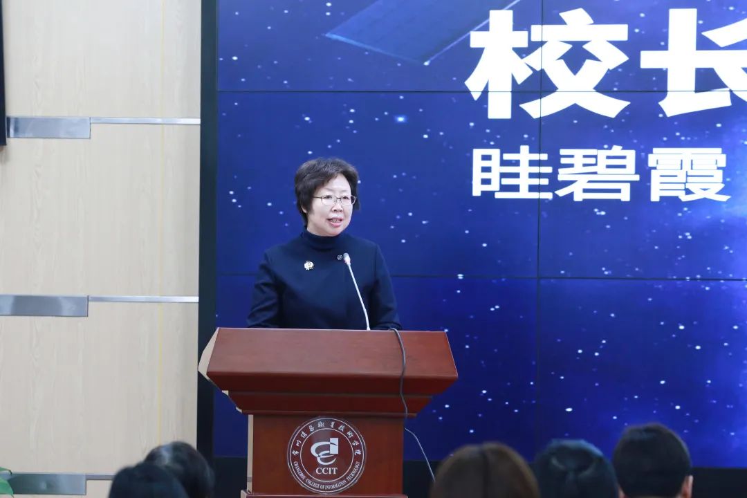 ▲常州信息职业技术学院校长眭碧霞致欢迎辞