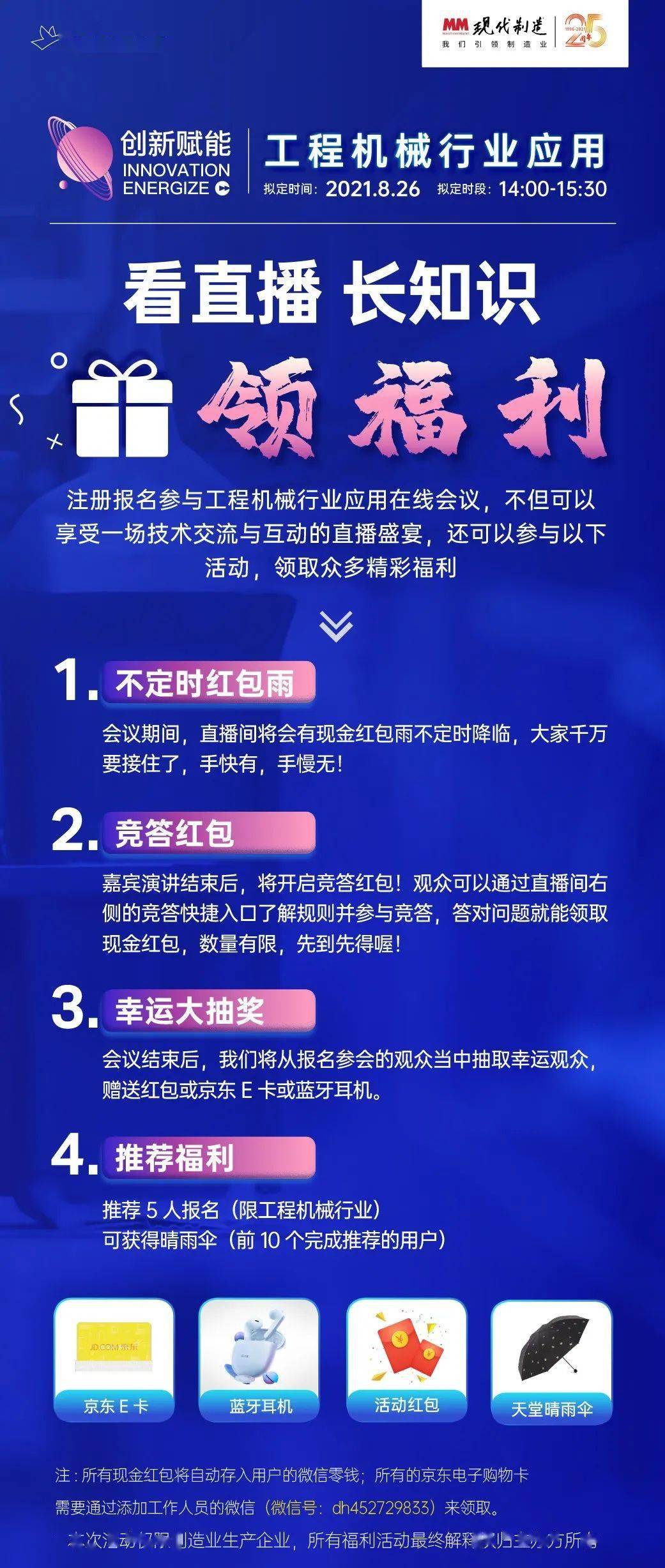 《现代制造》将于2021年8月26日举办“创新赋能——工程机械行业应用”在线会议,届时将邀请工程机械领域的领导专家、用户以及行业企业的技术代表进行交流探讨,旨在传递给行业客户及用户前沿技术和市场趋势,希望您能够有所收获。