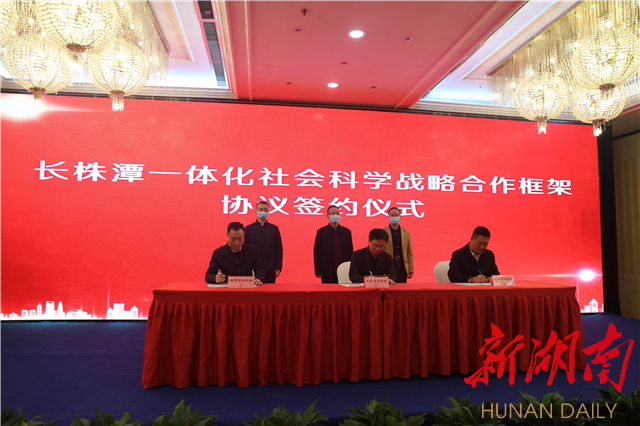 会上,三市共同签署了《长株潭一体化社会科学战略合作协议》。根据协议,三市社科联将从“专家资源共享、科研成果互通、学会共联共建”三个方面来进行深度合作,为实现哲学社会科学跨越发展奠定了重要基础。