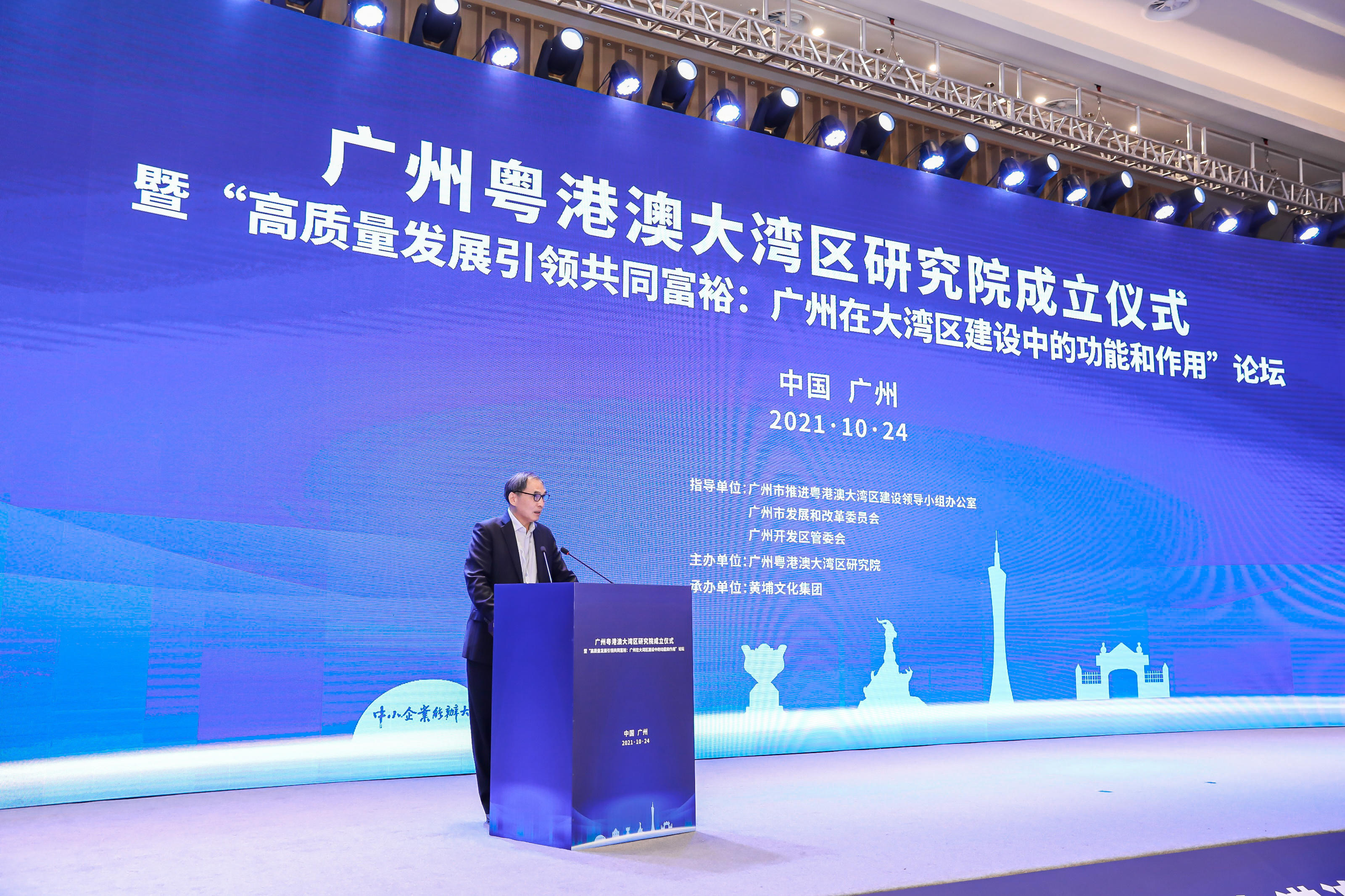 10月24日,广州粤港澳大湾区研究院成立仪式暨“高质量发展引领共同富裕:广州在大湾区建设中的功能和作用”论坛在黄埔国际会议中心举行,宣告了广州粤港澳大湾区研究院的诞生。