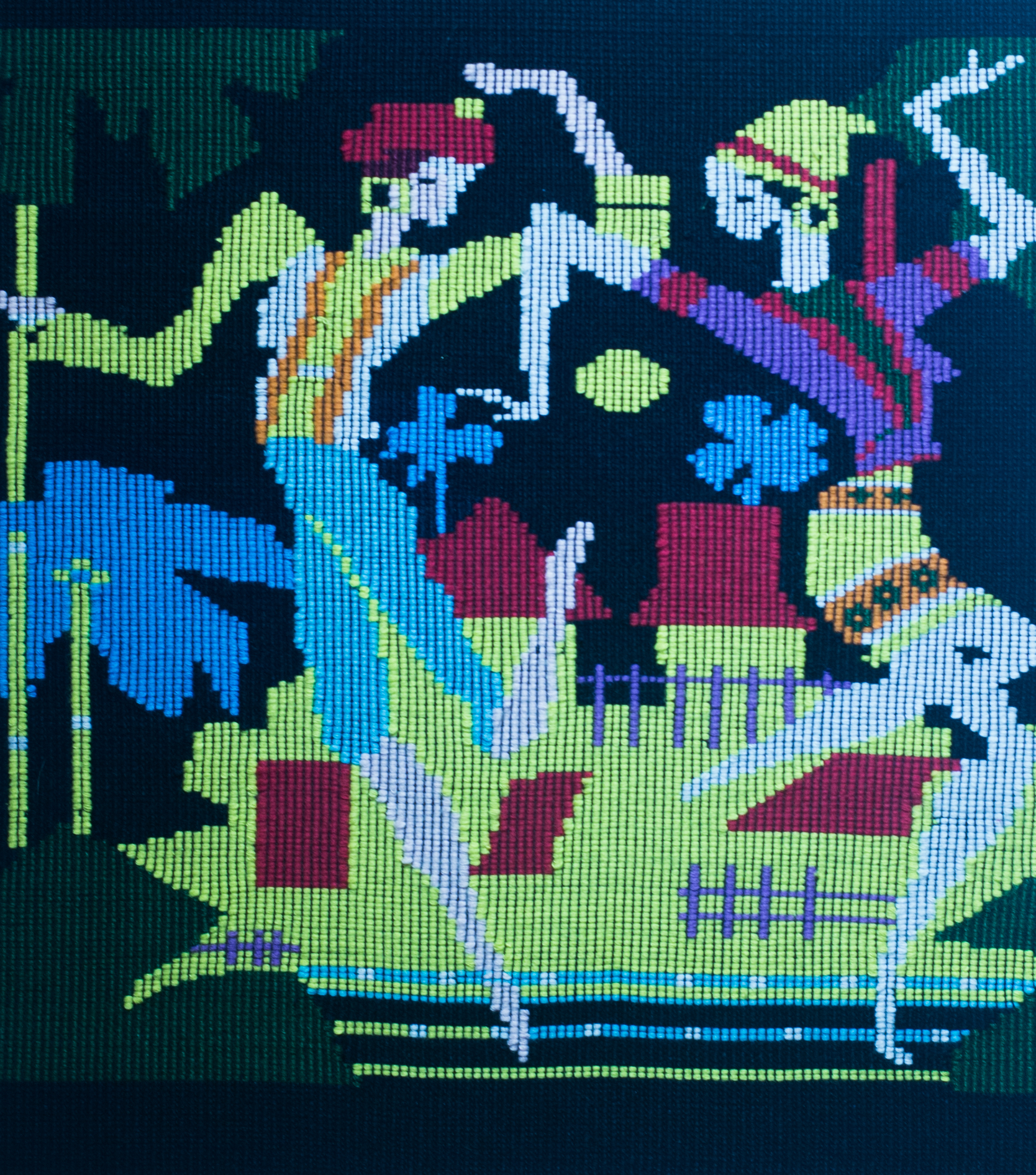 显然,朋友对西兰卡普的认识很深。他说,西兰卡普工序十分复杂,有纺线、染色、倒线、牵线、装筘、滚线、捡综、翻篙、捆杆上机、捡花、织布边、挑织等十几道工序。他还讲,每一件西兰卡普都是“孤品”,你很难找到两件完全相同的西兰卡普,哪怕是同一个人编织出来的。因为在手工喂进、断开、变换纬线过程中,图案颜色便会随之发生相应的变化,纬线断开多少次,花纹颜色就会有多少种,所以并无固定规律可遵循,从而造就了独一无二的西兰卡普。