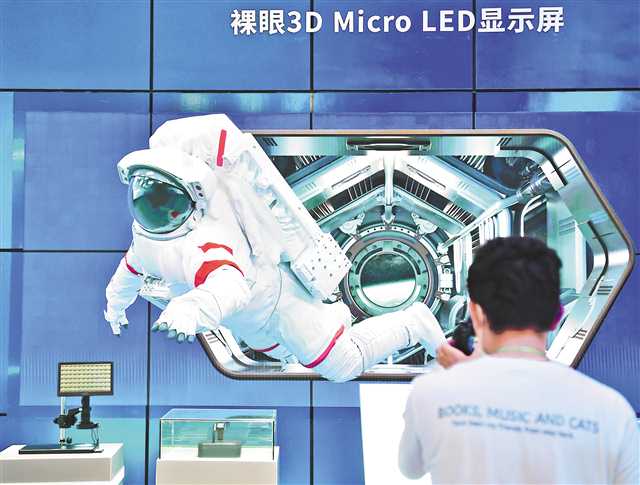 8月22日,重庆国博中心2021智博会现场,“宇航员”从康佳电子带来的裸眼3D显示屏中“飞出”。