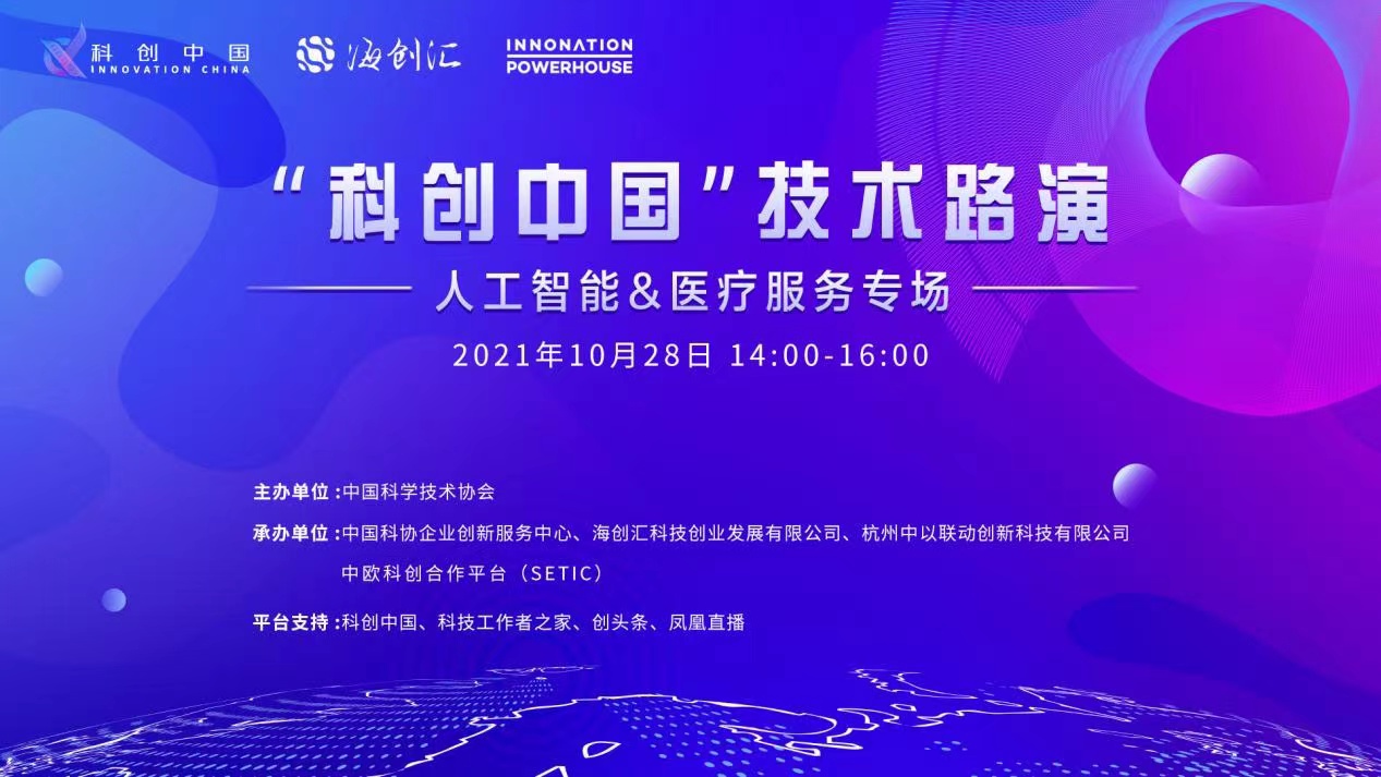 10月28日下午,由中国科学技术协会主办,中国科协企业创新服务中心、海创汇科技创业发展有限公司、杭州中以联动创新科技有限公司、中欧科创合作平台共同承办,“科创中国”技术路演——人工智能&医疗服务专场活动在杭举行,近23万人次通过“科创中国”、科技工作者之家、海创汇云、凤凰网等平台线上观看路演直播。