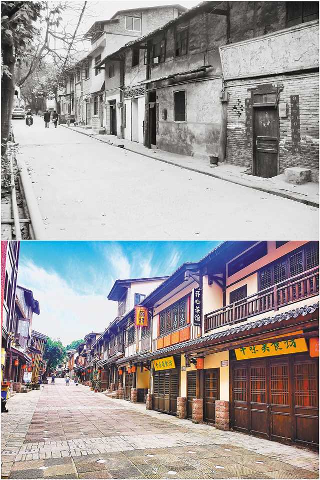 改造前后的黄桷垭老街。(受访者供图)