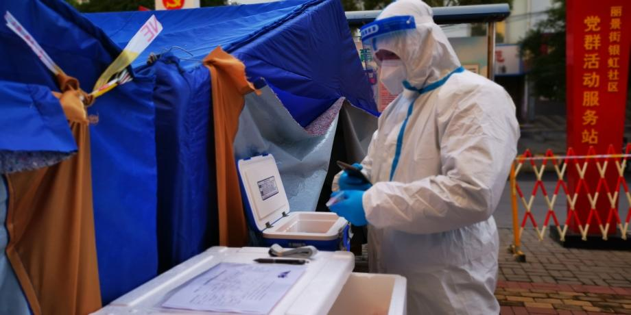10月22日,银川市兴庆区科协接到区委指令,全体干部紧急前往丽景街银虹社区开展新冠肺炎防疫工作。接到命令后科协干部闻令而动,景黎柱被分配到核酸检测转运组。由于时间紧迫,社区晚上6点开始大范围核酸检测,四个核酸采集口需要2名转运人员,但是人手不够只有景黎柱一人承担此项工作。