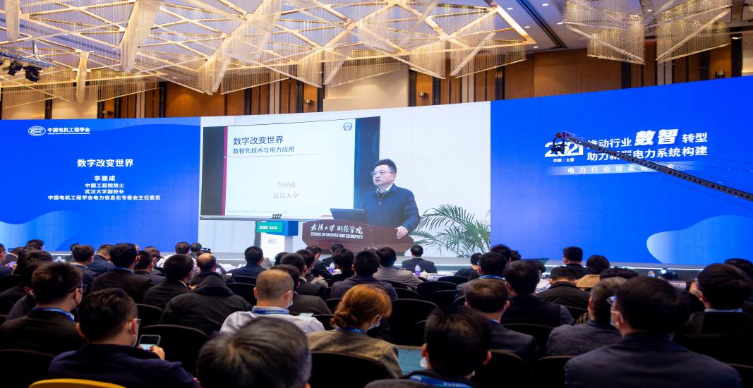 在学术交流环节,会议邀请到中国工程院院士、武汉大学副校长、电力信息化专委会主任委员李建成通过线上方式作了题为《数字改变世界》的主旨报告,报告聚焦当前数字化技术的发展,为行业数智化转型起到了重要的推动作用。