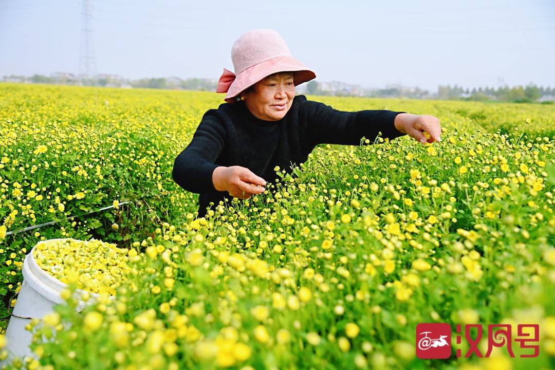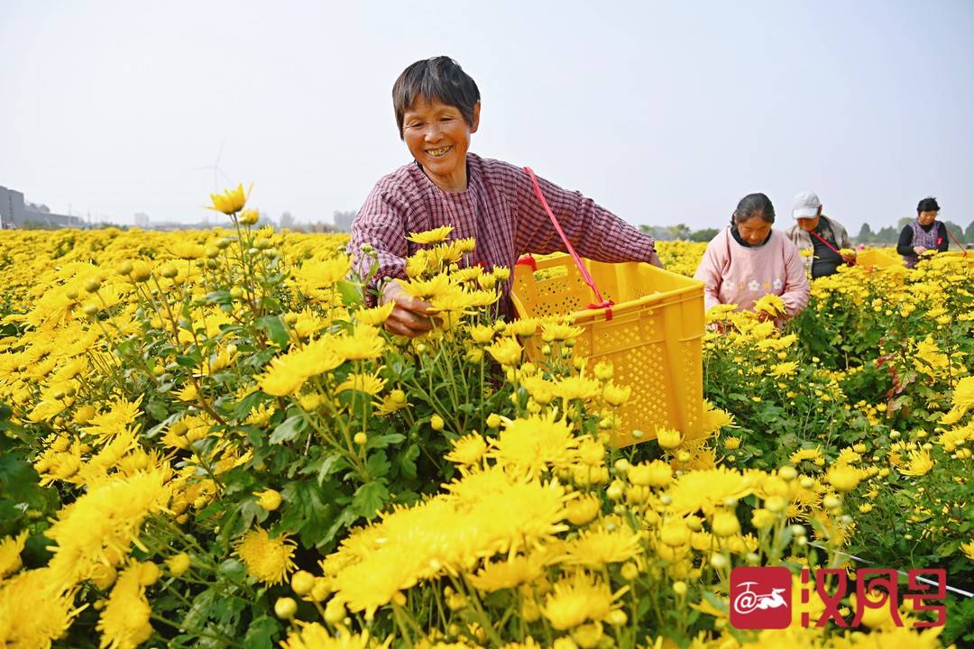 “土地承包出去有租金,平常还能在社区菊花产业园打零工,现在菊花收获季,采摘1斤杭白菊有1元的收入,一天可以摘100多斤,明年我也准备跟着合作社一起种植菊花,日子越过越红火。”望着筐子里一朵朵金灿灿的菊花,桃园社区居民张潇脸上乐开了花。