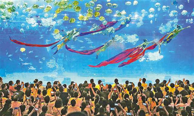 10月5日,巴南区汉海海洋公园,市民欣赏表演《再见飞天》。特约摄影 钟志兵/视觉重庆