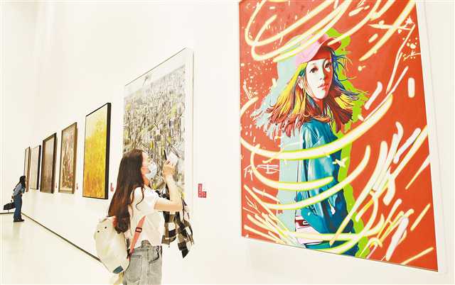 10月2日,在四川美术学院美术馆,市民正在观看展览。 通讯员 赵杰昌 摄/视觉重庆