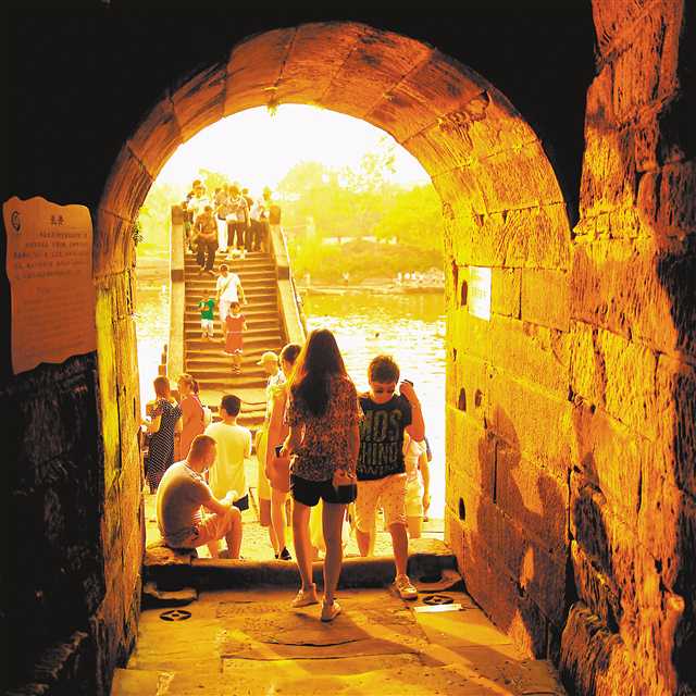 10月4日,游客在荣昌区万灵古镇享受“漫游”时光。通讯员 张成杰 摄/视觉重庆
