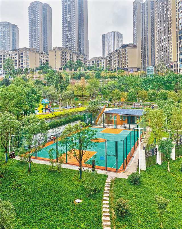九龙坡区凌江园,居民在利用坡坎崖分层次打造的绿化区和体育运动区休闲。(本报资料图片)记者 张锦辉 摄/视觉重庆