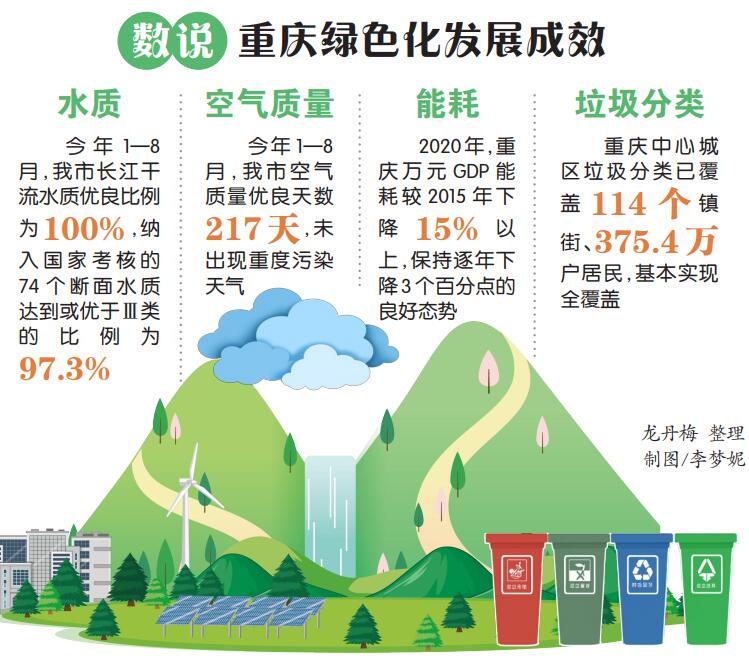 青山更绿,碧水长清。重庆通过统筹山水林田湖草沙系统治理,实施生态保护修复重大工程,极大地提升了生态系统质量和稳定性。同时,通过深入打好污染防治攻坚战,实现了天更蓝、地更绿、水更清、空气更清新。市生态环境局提供的数据显示,今年1—8月,我市长江干流水质优良比例为100%,纳入国家考核的74个断面水质达到或优于Ⅲ类的比例为97.3%;空气质量优良天数217天,未出现重度污染天气。