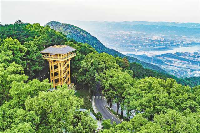 5月9日,缙云山腾龙垭观景台,游客登上林上阁一览嘉陵江北碚段八桥叠翠的别样美景,腾龙垭生态修复工程于今年初正式开放。首席记者 龙帆 摄/视觉重庆