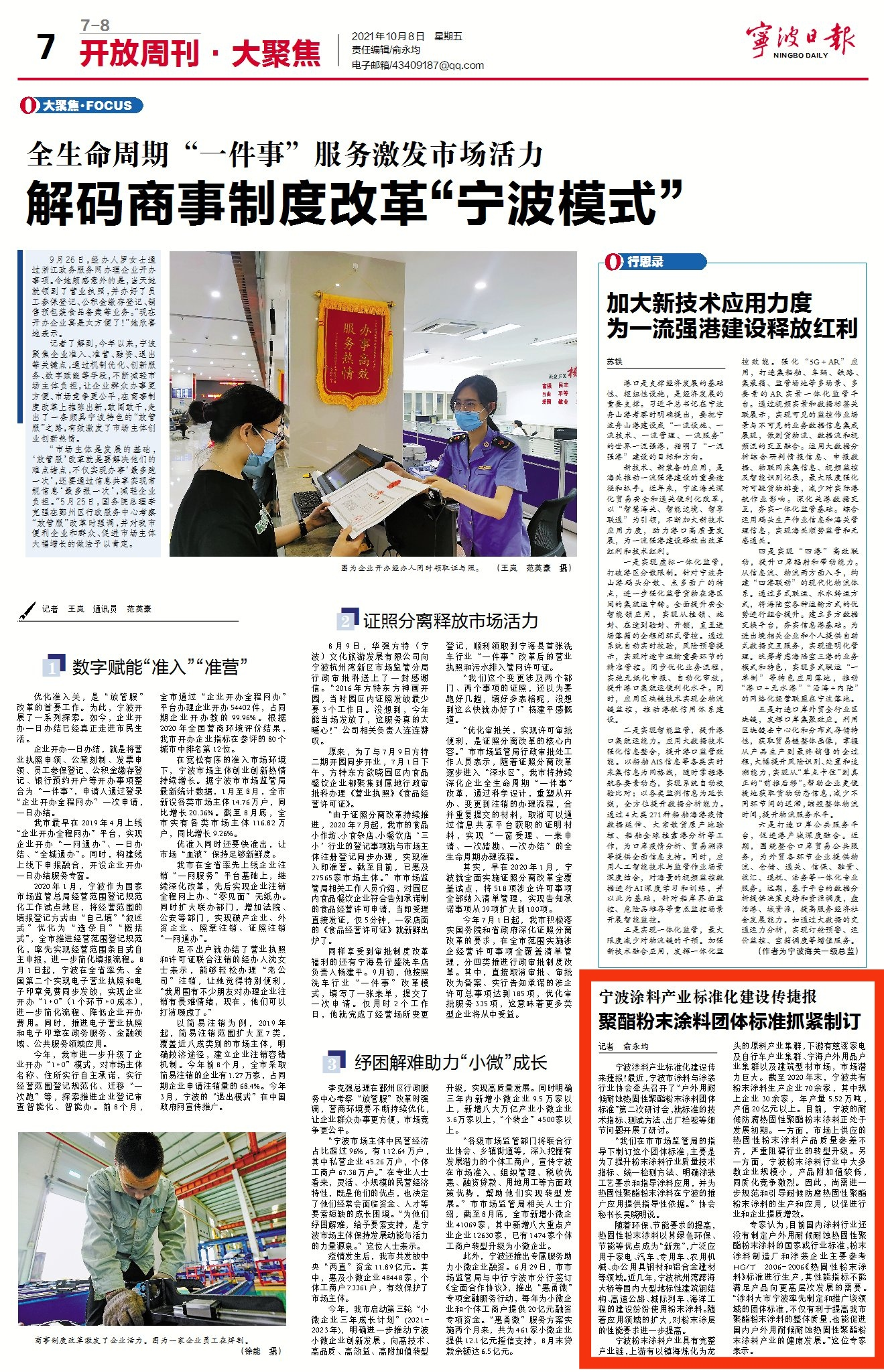 宁波涂协牵头制定团体标准在《宁波日报》和甬派APP刊登