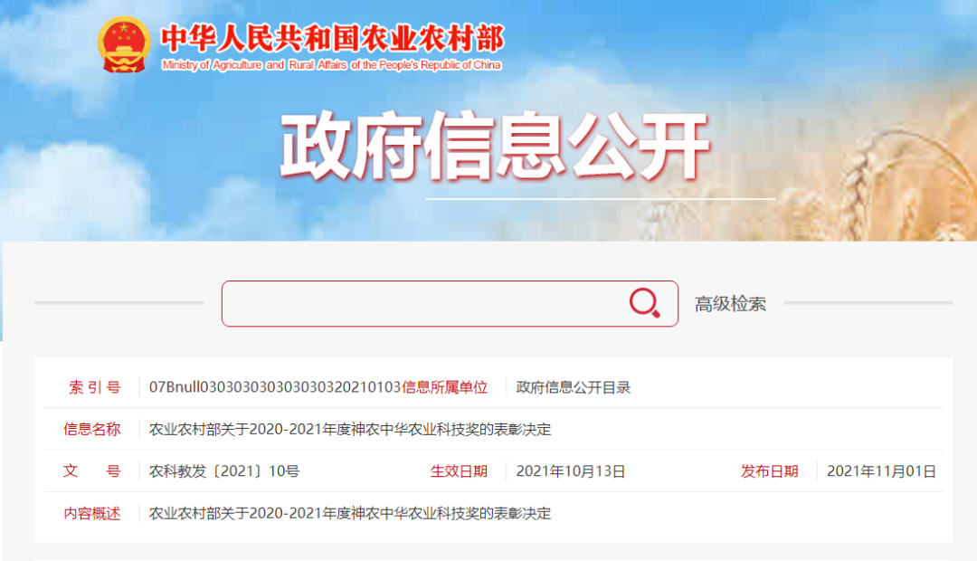 11月1日,农业农村部公布了2020-2021年度神农中华农业科技奖获奖名单,由中国茶叶学会评价的中国农业科学院茶叶研究所主持完成的科技成果“白茶提质增效关键技术创新与产业化应用”荣获一等奖。