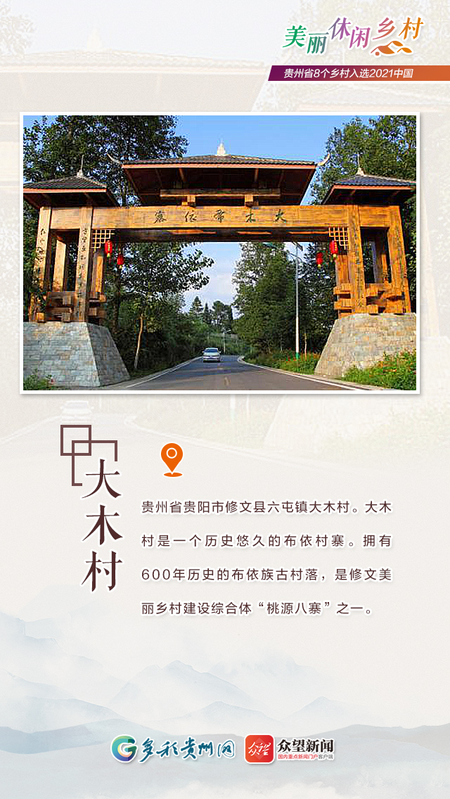 近日,农业农村部对2021年中国美丽休闲乡村名单进行公示,全国共有254个乡村入选,其中贵州有8个村上榜。