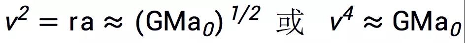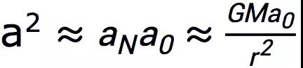 这里aN是按牛顿万有引力公式算出的引力加速度,而a则是米尔格罗姆理论给出的加速度。代入圆周运动的加速度为a = v2/r,就得到: