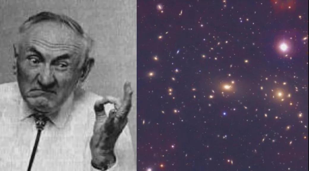 图1. Fritz Zwicky (左)和他研究的后发(Coma)星系团