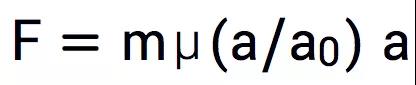 密尔格罗姆提出的模型是一种从经验规律出发的理论。他假定当万有引力的强度(重力加速度的大小)比较大时,物体受到的引力可以用牛顿万有引力的公式描述,但是当其减弱到一定程度时,则偏离标准的牛顿动力学。具体地说,我们所熟悉的物体运动定律是牛顿第二运动定律F=ma,即物体加速度乘以质量等于力。他把这一定律改为: