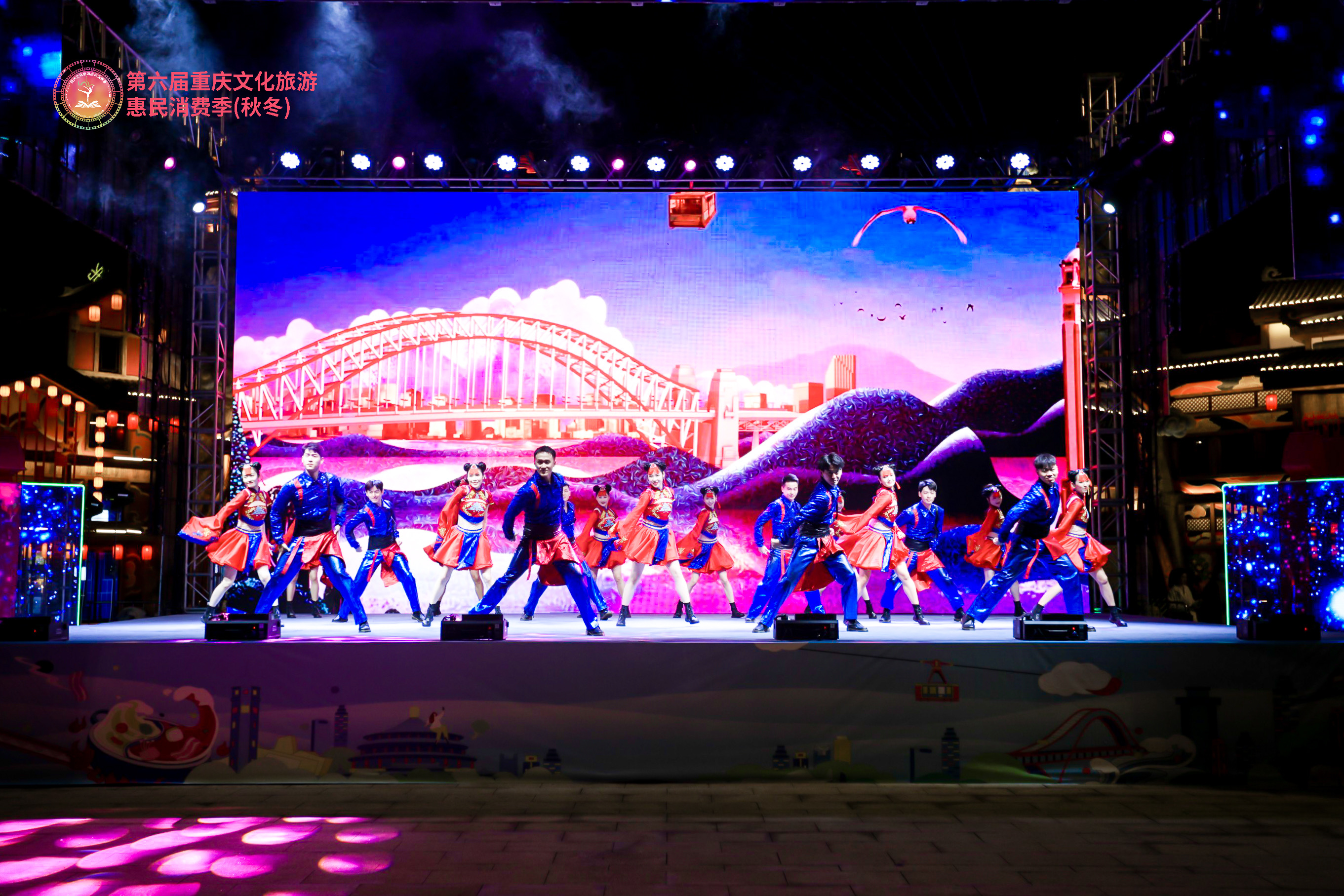 街舞表演、杂技表演、京剧表演……10月22日晚8时,在精彩的文艺演出中,第六届重庆文化旅游惠民消费季(秋冬)启动仪式在沙坪坝区融创文旅城渝乐小镇广场举行。在本次消费季中,我市将开展20多场文旅主题活动,发放惠民补贴超过1000万元,供市民游客分享重庆文旅产业发展红利。