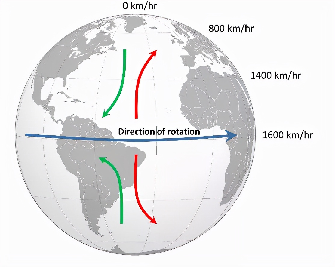由于北半球的大陆板块面积比南半球大得多,大部分人口也集中在北半球,身在北半球的我们不经意间会认为所有的地球都和自己是相似的,忽略了某些物理规律并不适用于南半球。其中,南北半球最重要的差异是由地转偏向力(又称科氏力)造成的,它不是实际存在的作用力,更确切地说,它是为了简化地球自转时力学问题而引入的一种效应。在我们眼中的地球是静止的,但实际上它自转会产生地转偏向力,把运动的物体“甩”出去,但这个效果对运动速度慢的物体并不明显,我们日常也难以觉察到。