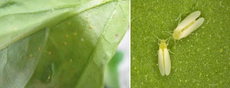 从左到右依次为:烟粉虱若虫;烟粉虱成虫(图片来源:天山植保)