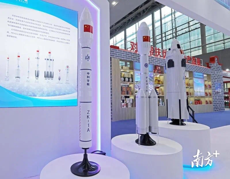 城市名片展示区从南沙概况、进口示范区、航运物流、营商环境、产业引擎展示南沙。现场展出吉利科技集团全国唯一商业航天总部的卫星产品、中科宇航设计制造的国内直径最大、推力最大、运载系数最高的固体搭载火箭ZK-1A以及广船国际制造的世界上航行速度最快、性能最优的节能环保型高端豪华客滚船等高精尖产品模型。